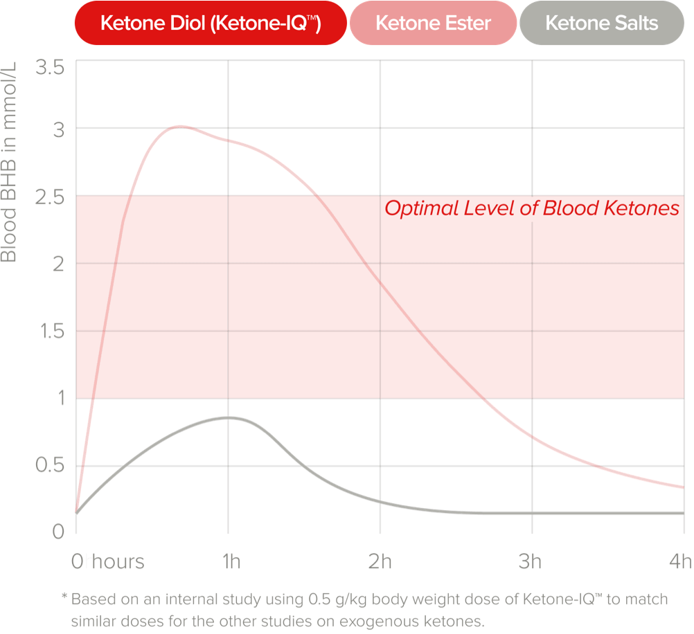 - Ketone Diol (Ketone-IQ)Through our $6MM contract with the United States Department of Defense Special Operations Command (US DOD SOCOM), we found that Ketone Diols are ideal for physically and cognitively demanding tasks, unlike HVMN Ketone V1, which was a Ketone Ester.Ketone-IQ® contains a pure 100% Ketone Diol called R-1,3-Butanediol (R-1,3-BDO).Ketone esters are only 33-50% R-1,3-BDO; the remainder is typically BHB (too spiky) or MCT (too slow).R-1,3-BDO is the closest precursor to D-BHB, and it's converted directly into D-BHB with near 100% efficiency.Ketone-IQ has an optimal ketone curve that keeps you between 1.0 - 2.5mmol/L. This ketone range provides unparalleled efficacy, supported on the low end here, the high end here, and holistically here.Fast Acting: Ketone-IQ quickly raises your blood ketones above 1.0 mmol/L within 30-60 minutes.No Spike: Unlike ketone esters, there is no harmful initial spike above 2.5mmol/L because there's no unregulated D-BHB.Natural Slow Release: Ketone-IQ keeps your ketone levels elevated above 1.0mmol/L for a longer period than ketone salts or ketone esters. Your body naturally regulates the R-1,3-BDO → D-BHB process to stabilize energy levels.Ketone-IQ has a better taste than ketone esters (although it's still not your grandma's lemonade).Ketone-IQ is 1/3 the cost per gram of any ketone ester on the market.
