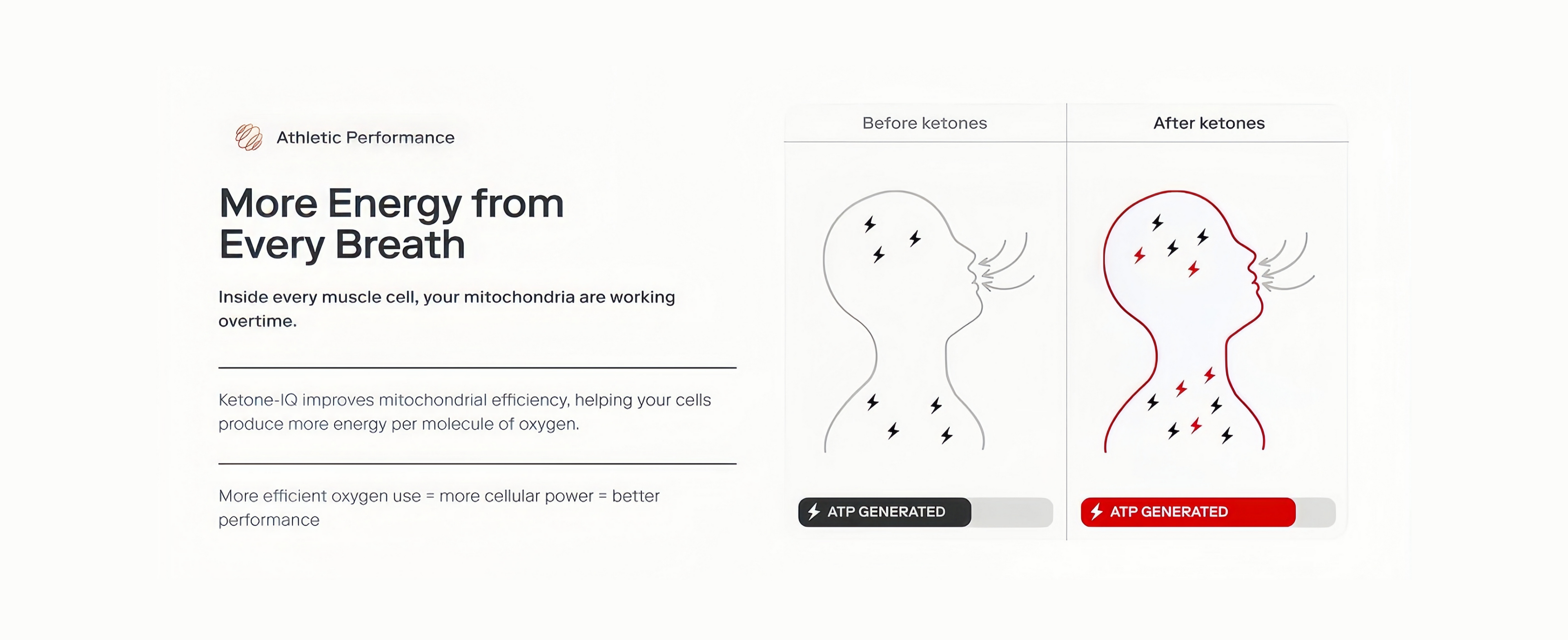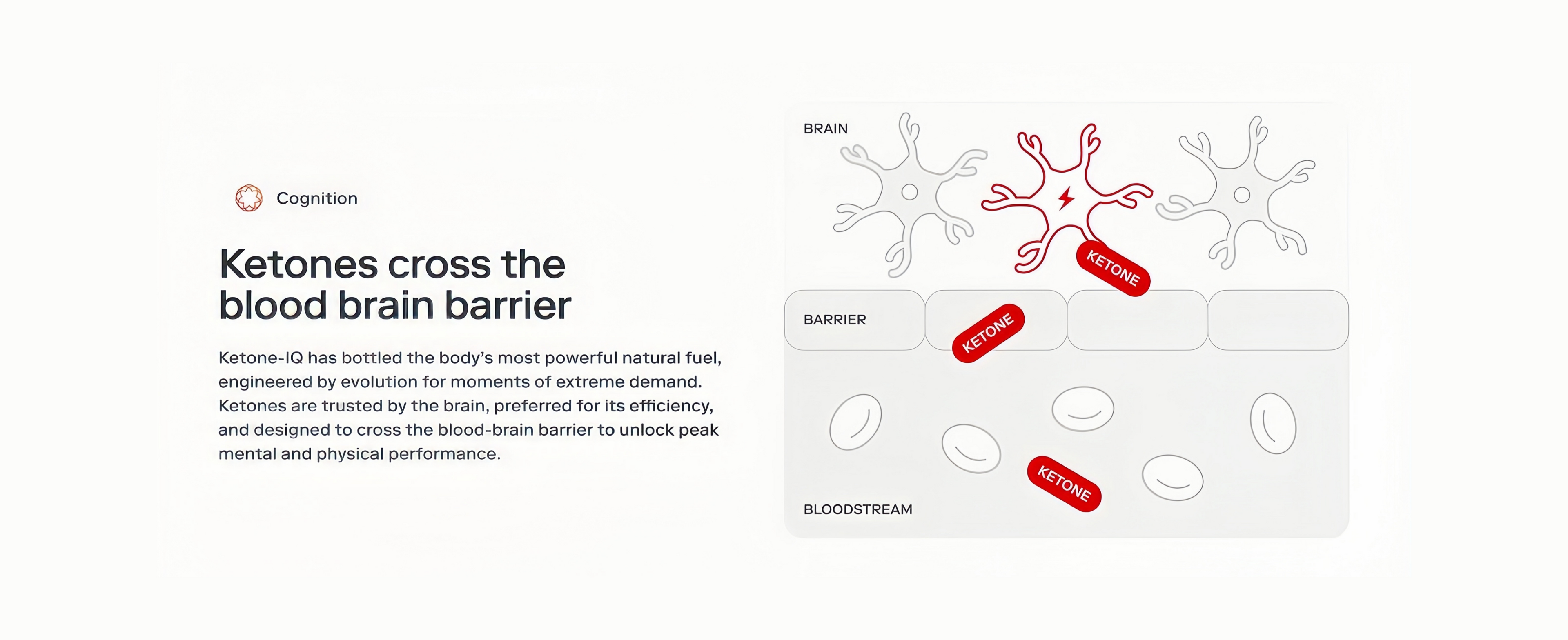 - Cognitive Performance: Ketones can cross the blood-brain barrier and generate 28% more ATP per gram than glucose. As an ultra-efficient brain fuel, they’re proven to improve focus, cognitive, and mental clarity and protect the brain from trauma, aging, and neurodegenerative diseases.