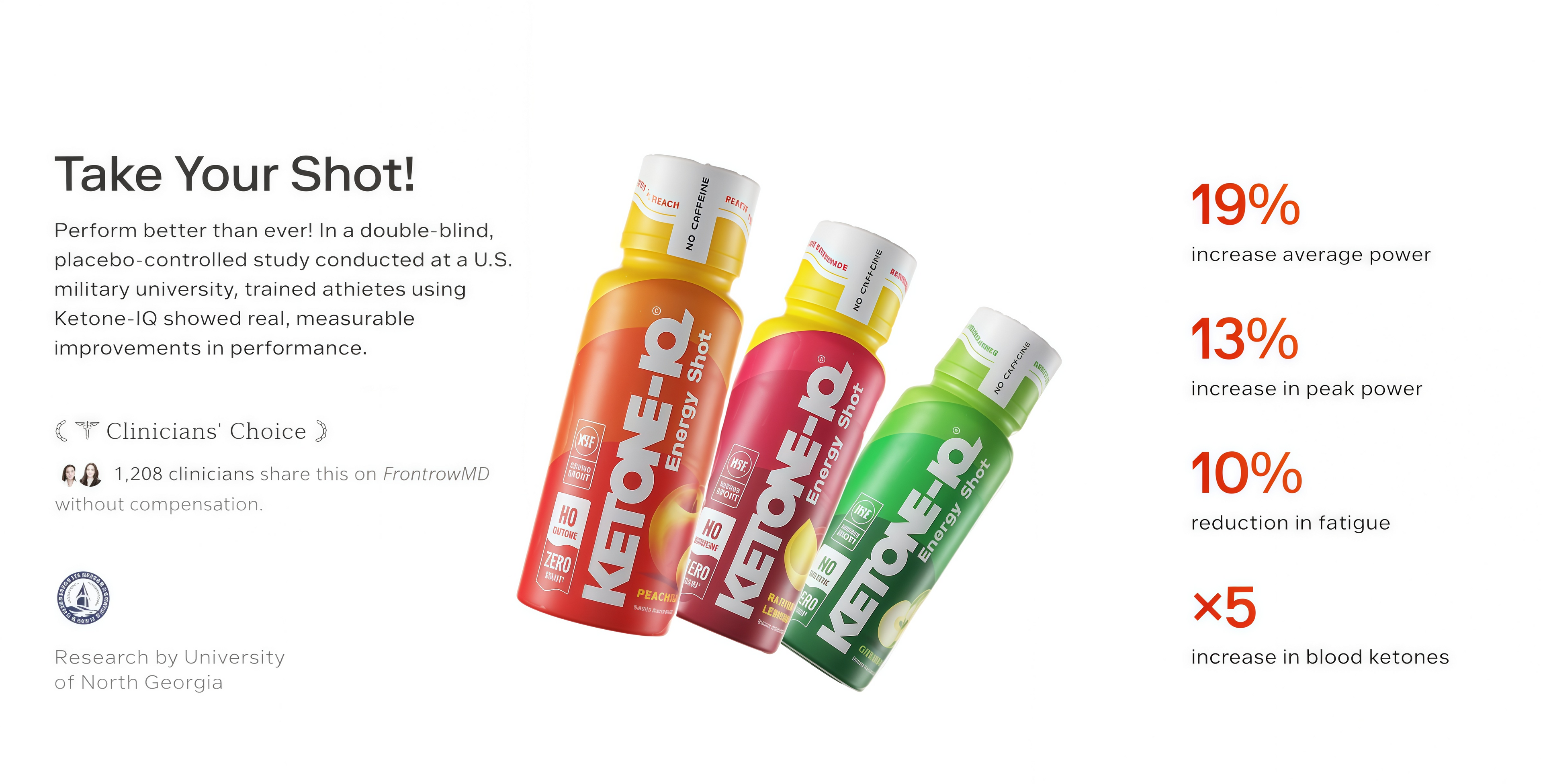 Energy and Focus. Ketone-IQ offers a stable boost of clarity, endurance & razor-sharp focus, allowing you to perform at your peak.*